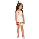 Um charme em cada detalhe! O conjunto infantil menina Kyly é sinônimo de conforto, alegria e muito estilo para os dias de diversão. A regata, confeccionada em meia malha 100% algodão, é macia, leve e respirável, ideal para acompanhar as brincadeiras. Sua modelagem soltinha e confortável proporciona liberdade de movimento, e o acabamento reforçado nas cavas e no decote garante durabilidade e ótimo caimento. A estampa divertida e colorida, cria um visual alegre e moderno.