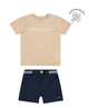O Conjunto Colorittá é composto por camiseta em meia malha e bermuda em moletom ponto roma. A camiseta de mangas curtas possui bordado frontal, garantindo um destaque charmoso à peça. Já a bermuda conta com elástico no cós com retilínea listrada e botão decorativo, além de bolsos laterais. Ideal para momentos especiais que pedem um visual mais alinhado, esse conjunto é garantia de atitude e conforto. Aposte!