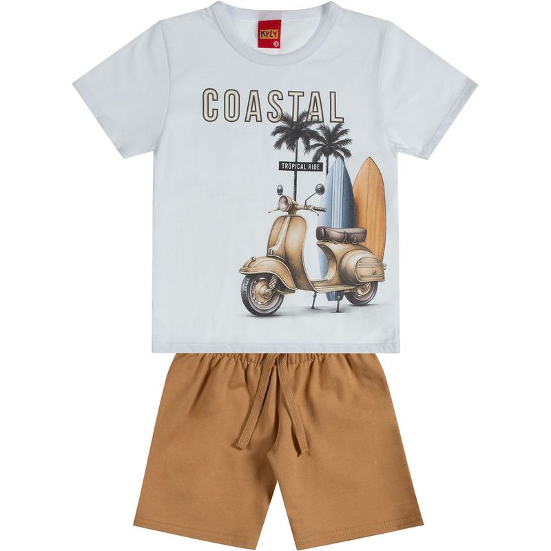 Conjunto masculino infantil perfeito para os pequenos que adoram conforto e estilo! Composto por uma camiseta leve e shorts práticos, este conjunto nas cores branco, verde chá e amêndoa é ideal para os dias ensolarados. O tecido macio garante liberdade de movimento, enquanto o design moderno deixa seu filho sempre na moda. Não perca a chance de vestir seu garoto com essa combinação que une qualidade e charme! No tamanho 1.