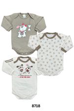Com mangas longas, são perfeitos para dias mais fresquinhos, ajudando a manter o bebê aquecido. Possuem fechamento por botões de pressão entre as pernas, facilitando a troca de fraldas no dia a dia. O kit conta com 3 unidades, trazendo mais praticidade para a rotina dos pais.