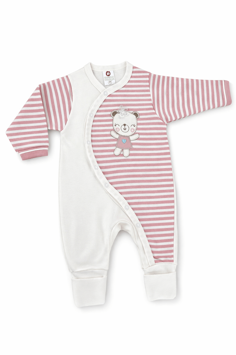 Macacão Longo RN ao G - Fazendo Graça, uma peça essencial para o guarda-roupa do seu bebê. Com um adorável design em listras rosa e brancas, este macacão apresenta um simpático urso na parte frontal, trazendo um toque lúdico e aconchegante. Confeccionado em material macio e respirável, ele garante conforto durante todo o dia, ideal para as aventuras diárias do seu pequeno.