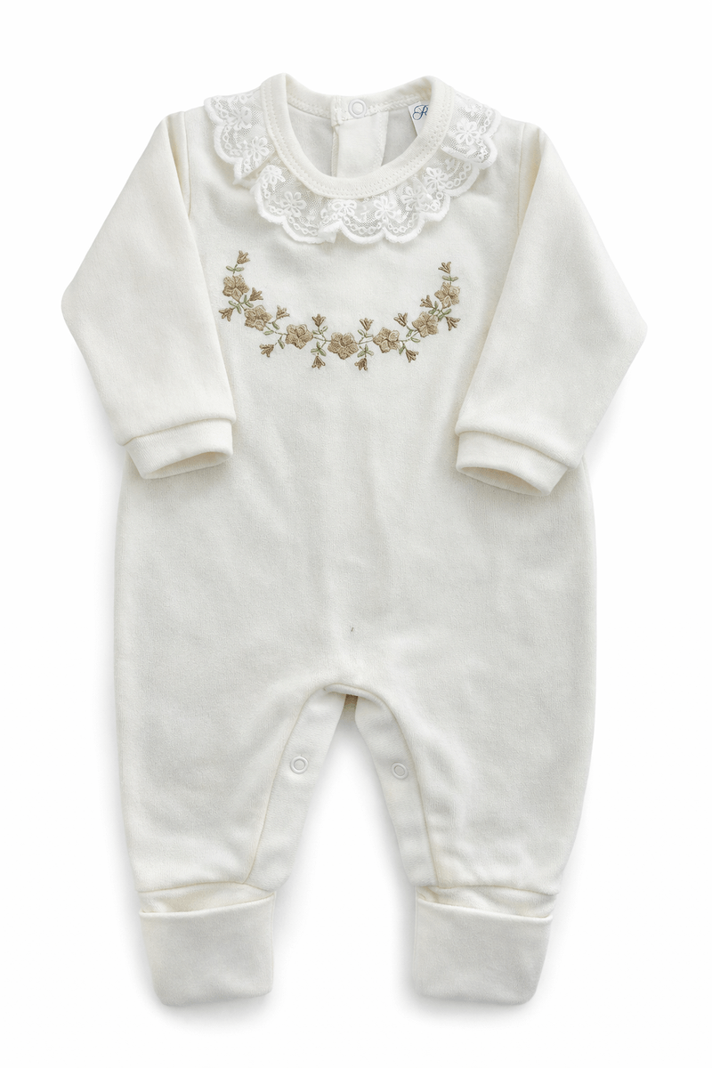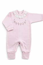 Macacão Longo RN ao G uma peça essencial para o guarda-roupa do seu pequeno. Com um design delicado e adornado com flores bordadas, este macacão combina conforto e estilo, proporcionando liberdade de movimento para o seu bebê. Ideal para ocasiões especiais ou para o dia a dia, ele é confeccionado em material macio e respirável, garantindo que seu bebê fique sempre confortável e elegante