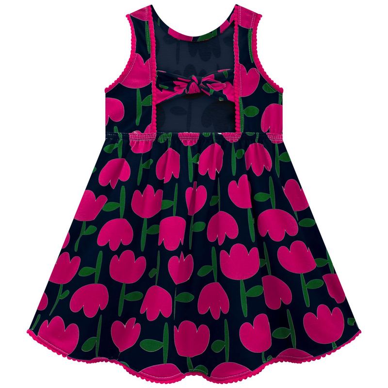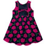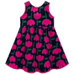 Com estampa alegre de flores, o modelo sem mangas e com corte rodado traz um toque divertido e delicado ao look. Ideal para passeios, festas ou momentos especiais em família.